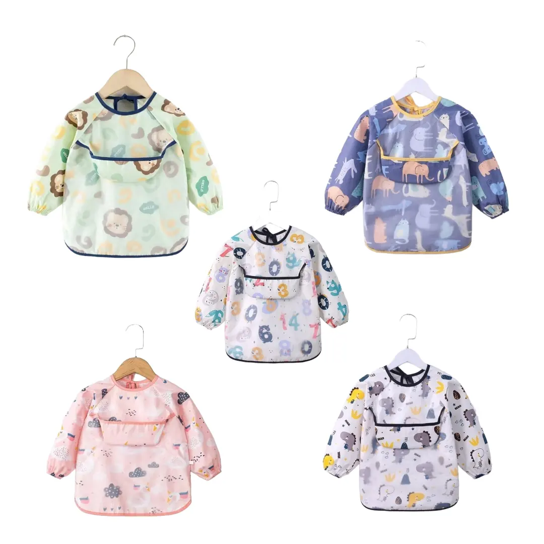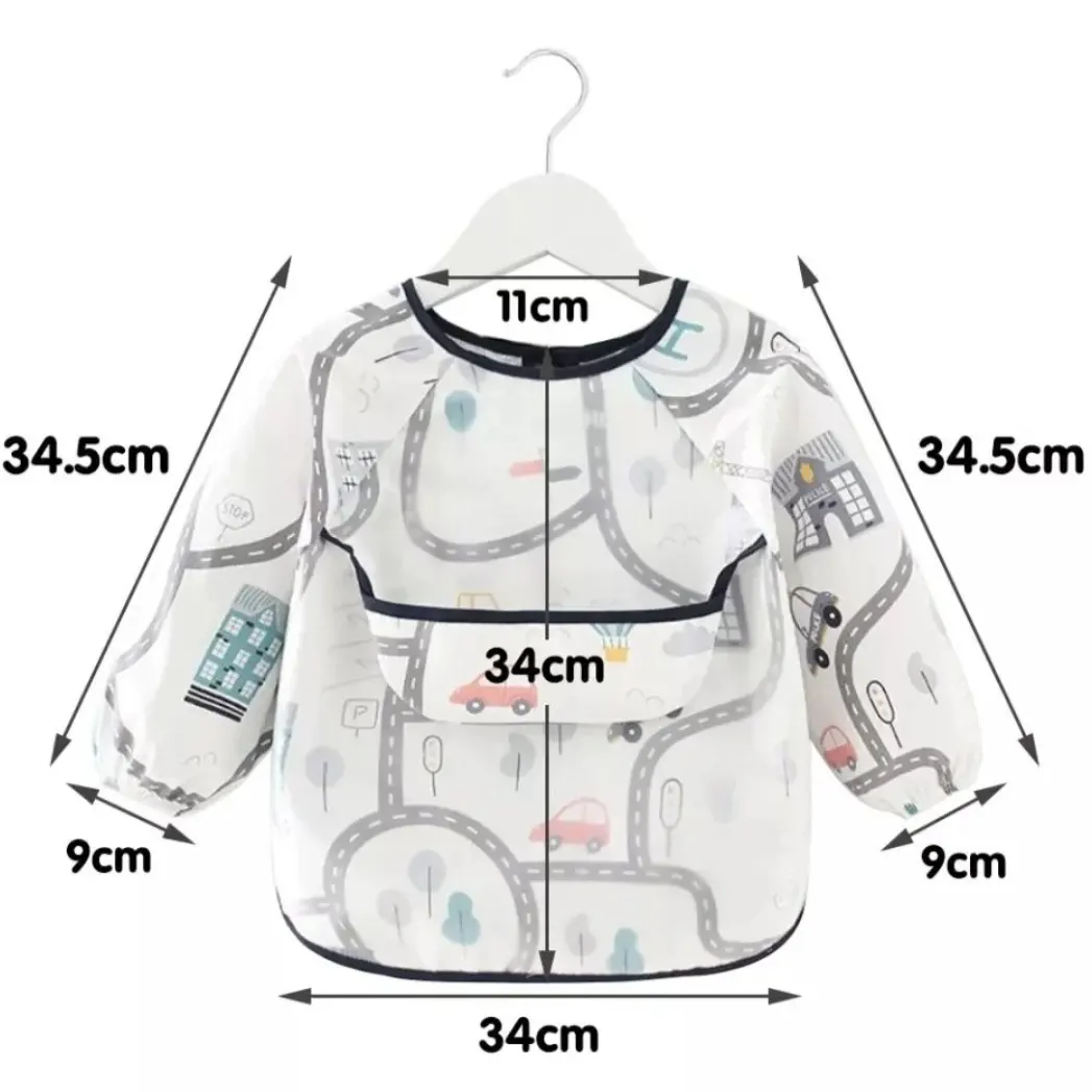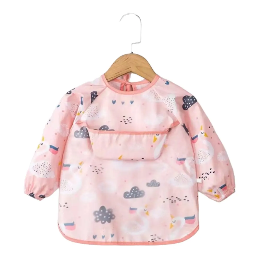 Babero delantal impermeable en la parte frontal con maga a prueba de agua.
