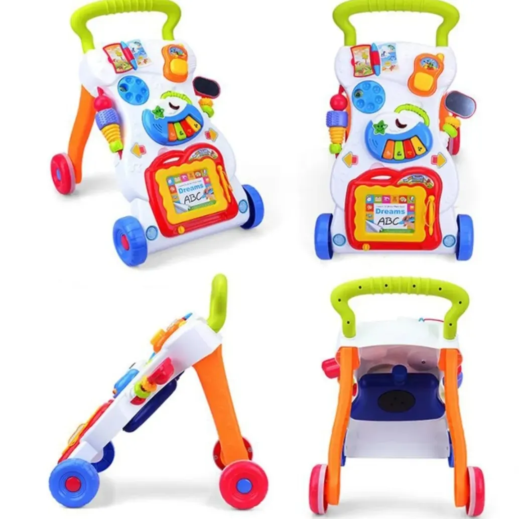 Hermoso caminador corre pasillo multifuncional.Incluye una pizarra mágica, un piano, un telefono con sonido extraible. sus ruedas son ajustables.