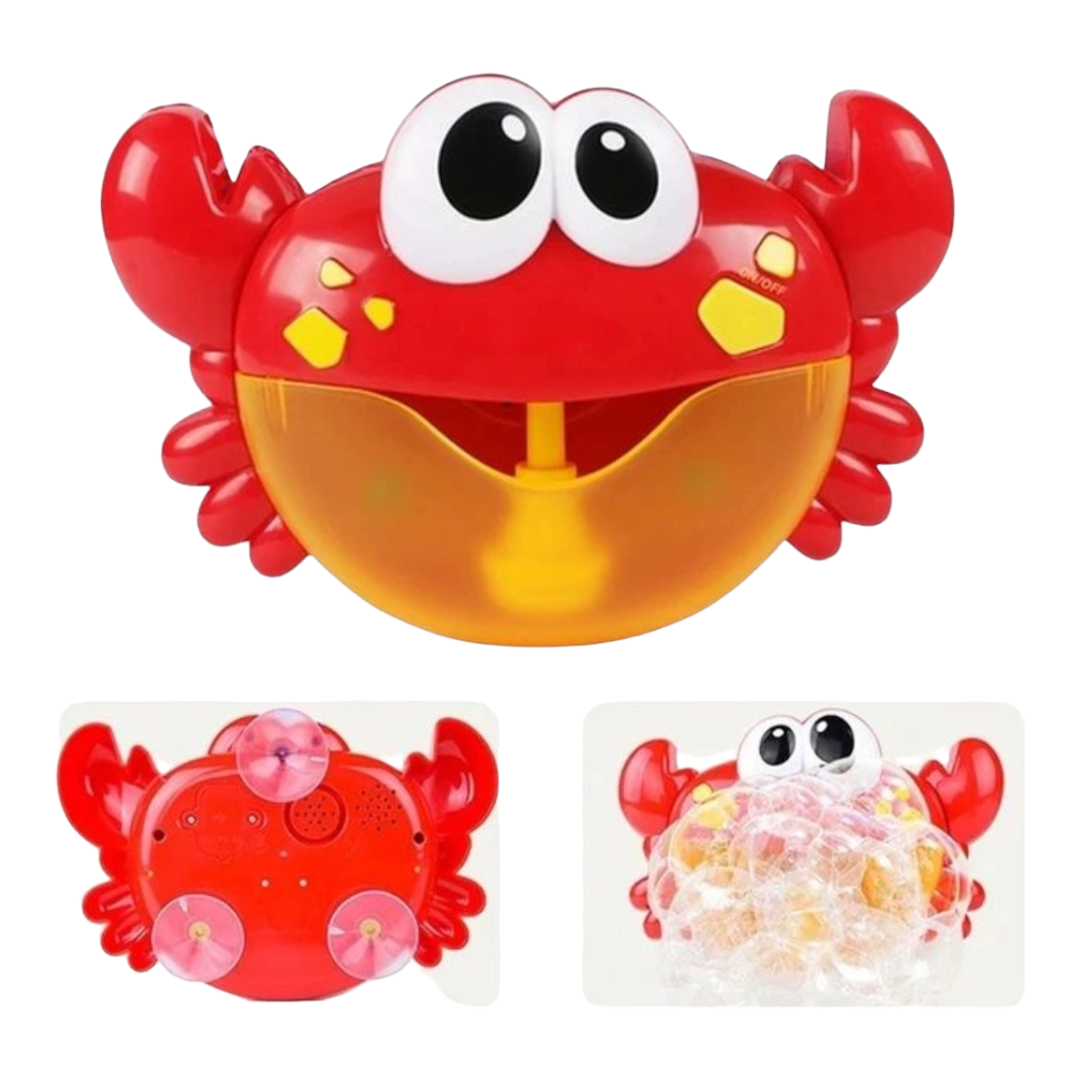 Entretenido juguete de baño cangrejo musical.maquina de hacer burbuja,trae chupones para adaptar a la bañera,cerámica del baño o a piscina.Funciona con con 2 pilas doble AA.