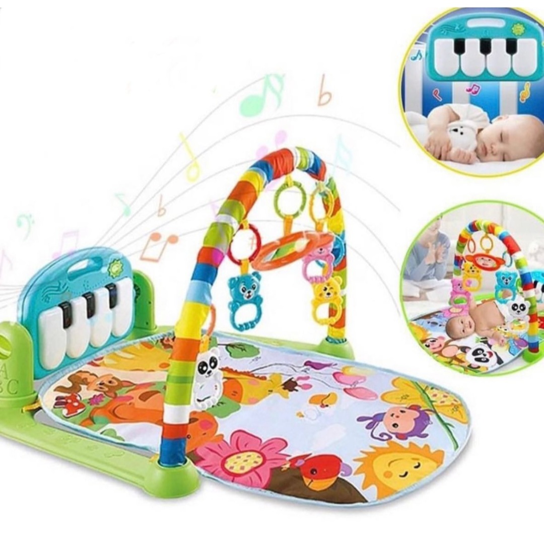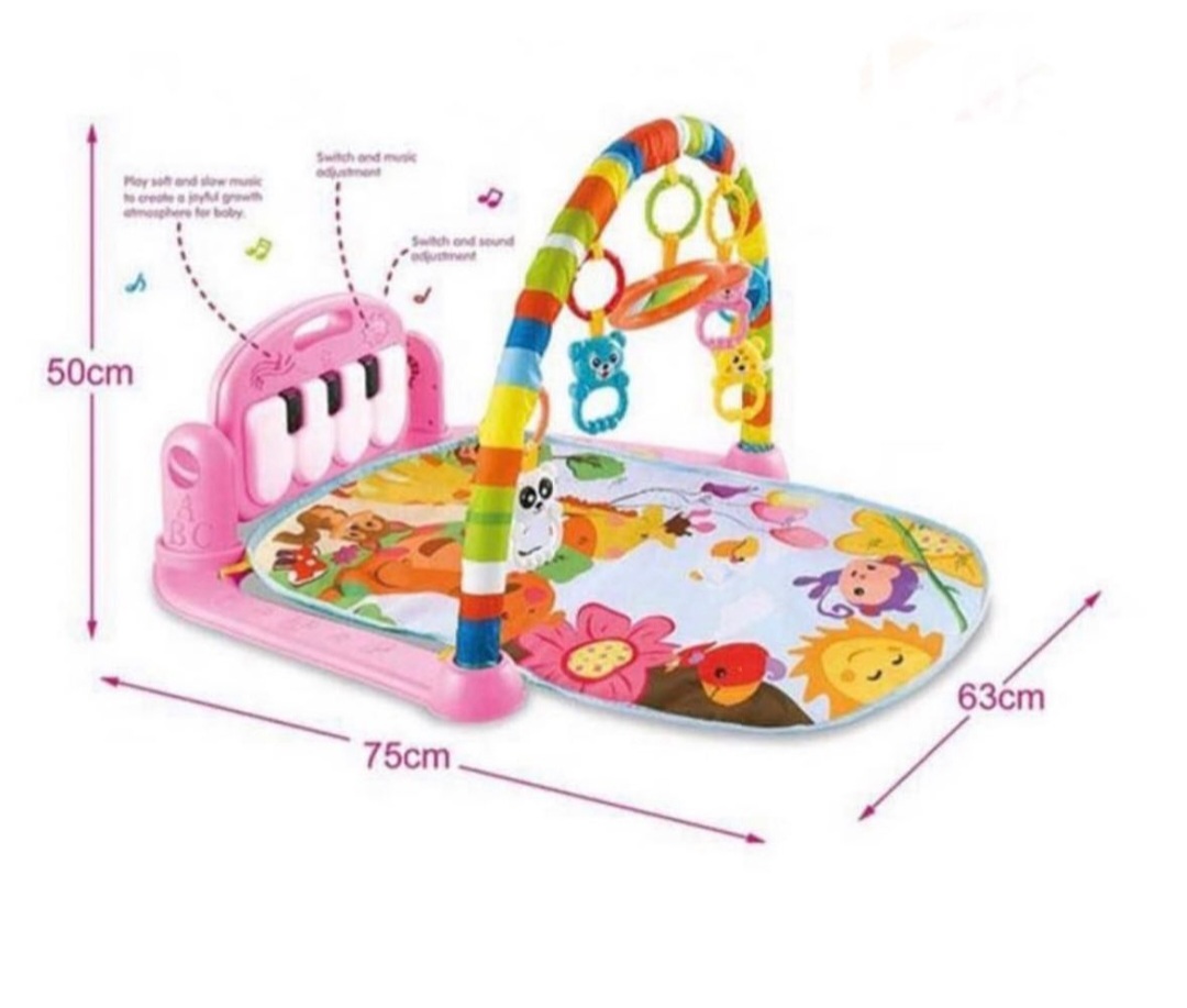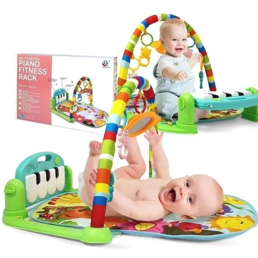 Gimnasio piano musical ideal para estimular a los bebés con sus colores llamativo y sonidos.Incluye: alfombra,piano,arco y juguetes colgantes.