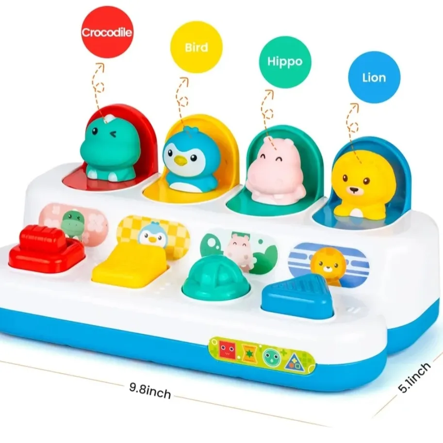 Juguete de aprendizaje interactivo, cuenta con botones de aprendizaje y giro para promover la comprensión de causa y efecto en los niños, ayuda a entrenar la coordinación ojo-mano y el movimiento fino.